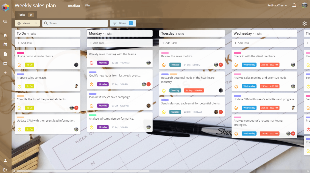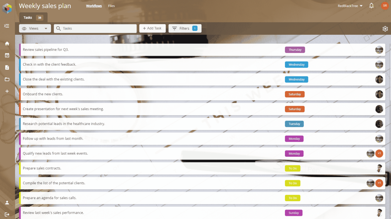 Easily assign tasks to individual days of the week. Drag and drop tasks to rearrange them based on changing priorities or schedules.